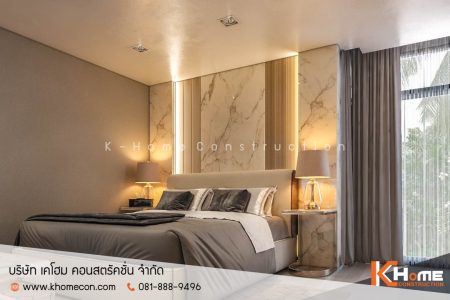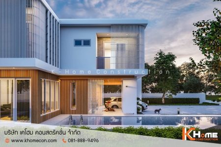 ” Modern muji house ” designed by K – Home Construction Company 2-storey residential house in Modern muji style with a swimming pool. And complete functionality, the perfect layout can be used in all areas of the house, beautiful modern design, adding warmth with muji style, a large house that can accommodate residents who are large families very well