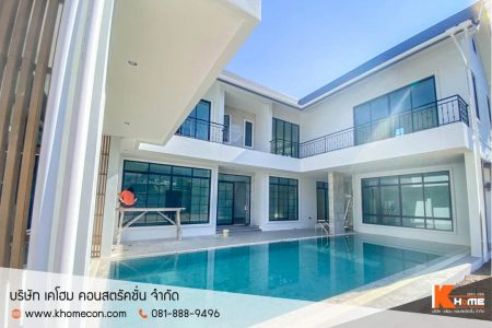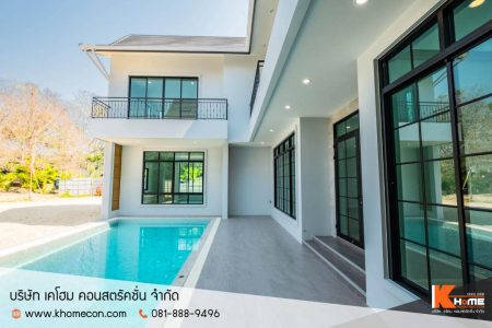 This job site is an “English Cottage” style house with a large swimming pool. designed to match the house Add a fresh, relaxing atmosphere It is a house design that emphasizes elegant decoration, blending a touch of warmth, cuteness, classic look, reflecting the homeowner’s classy taste as well.