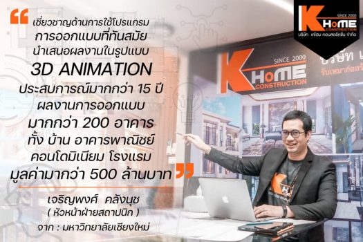 บ้านในฝันของคุณเป็นจริงได้เสมอ และเราพร้อมจะออกแบบฝันนั้นให้คุณด้วยความตั้งใจ เรามาทำความรู้จักกับสถาปนิก มากความสามารถ และมีผลงานการออกแบบมากมาย ของบริษัท K – Home Construction กันครับ