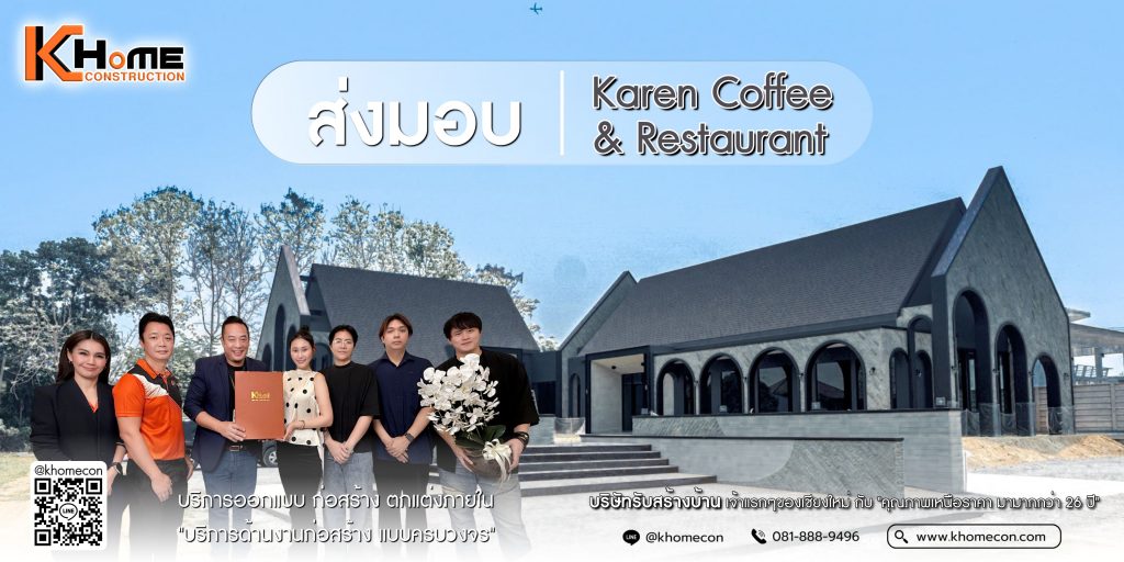 ที่เชื่อมั่น และไว้วางใจให้ บริษัท K – Home Construction เป็นผู้ออกแบบ และ ก่อสร้างร้านกาแฟ และร้านอาหารแห่งใหม่ของจังหวัดเชียงใหม่ ในครั้งนี้ ครับ / ค่ะ